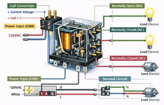 'n 8-pen aflos is 'n eenvoudige maar nuttige toestel om elektriese stroombane te beheer.Deur die onderdele, bedrading en veiligheidspraktyke te verstaan, kan jy dit effektief in baie toepassings gebruik.Behoorlike gebruik en instandhouding help om veilige, betroubare en langdurige werking in beide basiese en industriële stelsels te verseker.